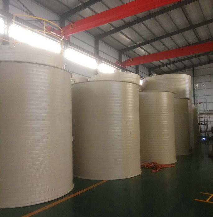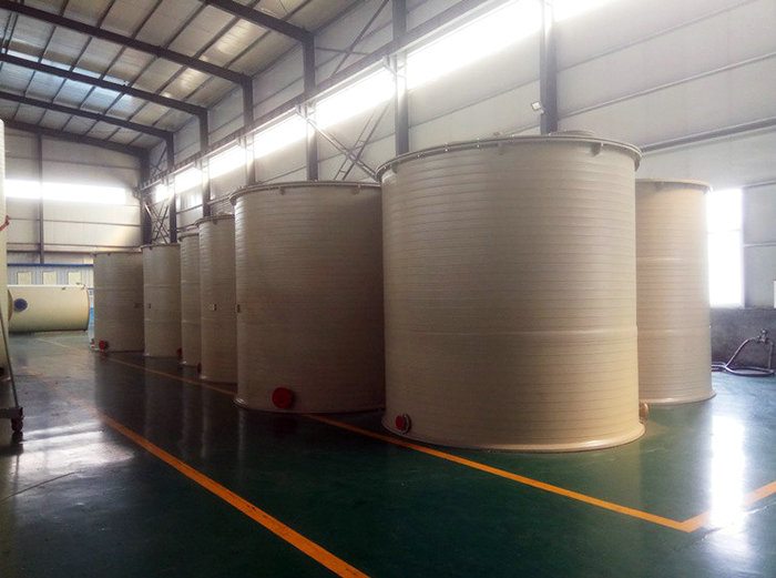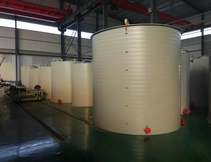 1、采用预埋地脚螺栓的方式,在牢固的基础上对聚丙烯储罐进行水平安装。